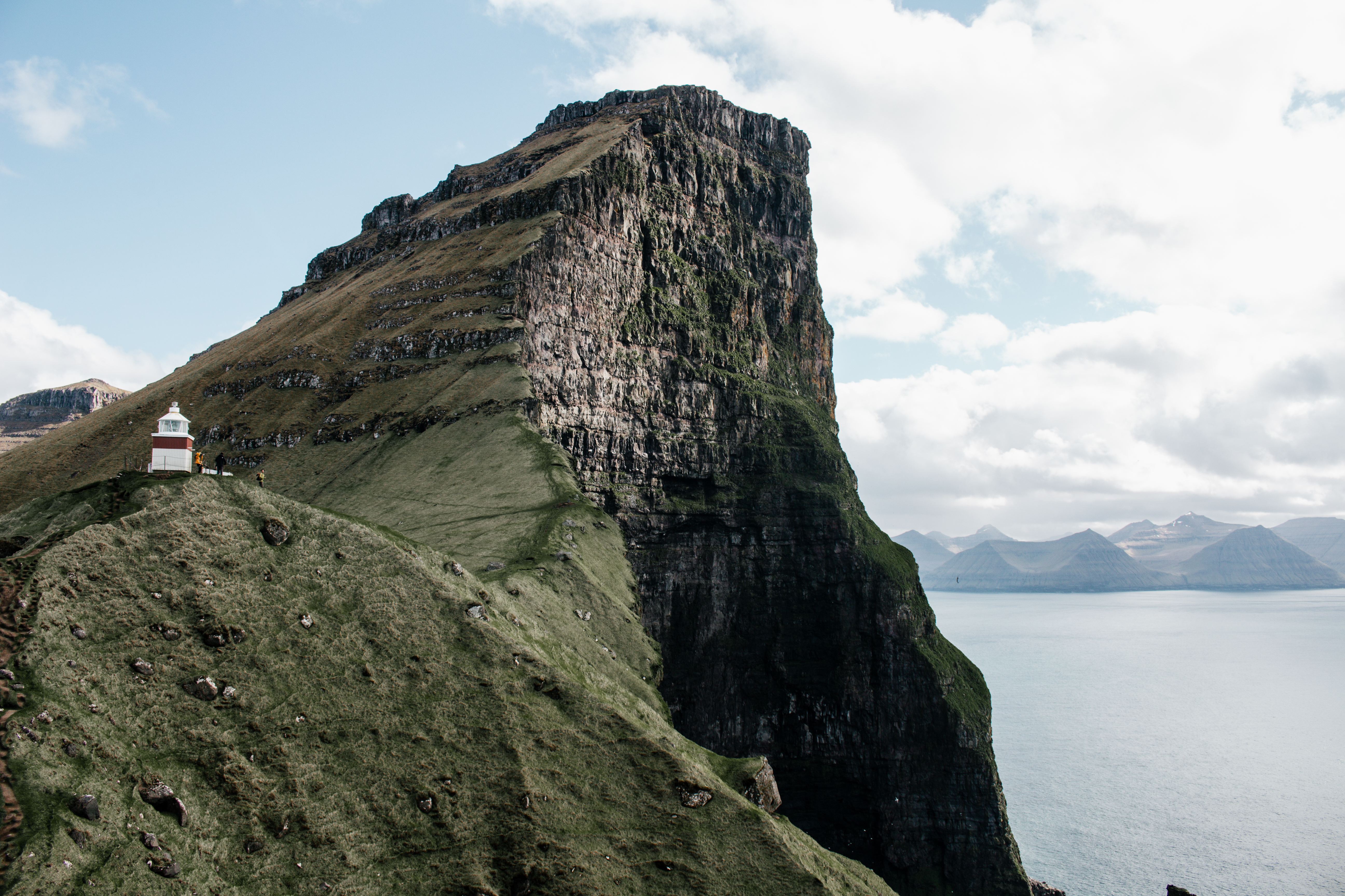 Further south, you can visit Akraberg Lighthouse, offering direct views of the Atlantic Ocean and surrounding cliffs.