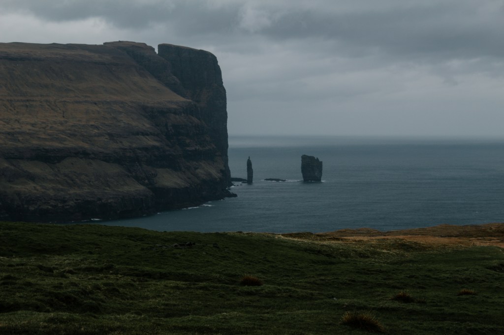But of course, you’re not going to stop after visiting only one place on this island. So head to the town Sorvagur. From here, you can start the walk to Drangarnir. For this walk, it is mandatory to be with a guide as you cross several wide private lands and you can’t walk anywhere. As of May 2024, the fee for this hike was 80€ per person. The walk itself is not very hard and is about 3 hours long, depending on the speed of the others members of the group. You will cross severals lands and beaches before some climbing and finally descending onto Drangarnir.
