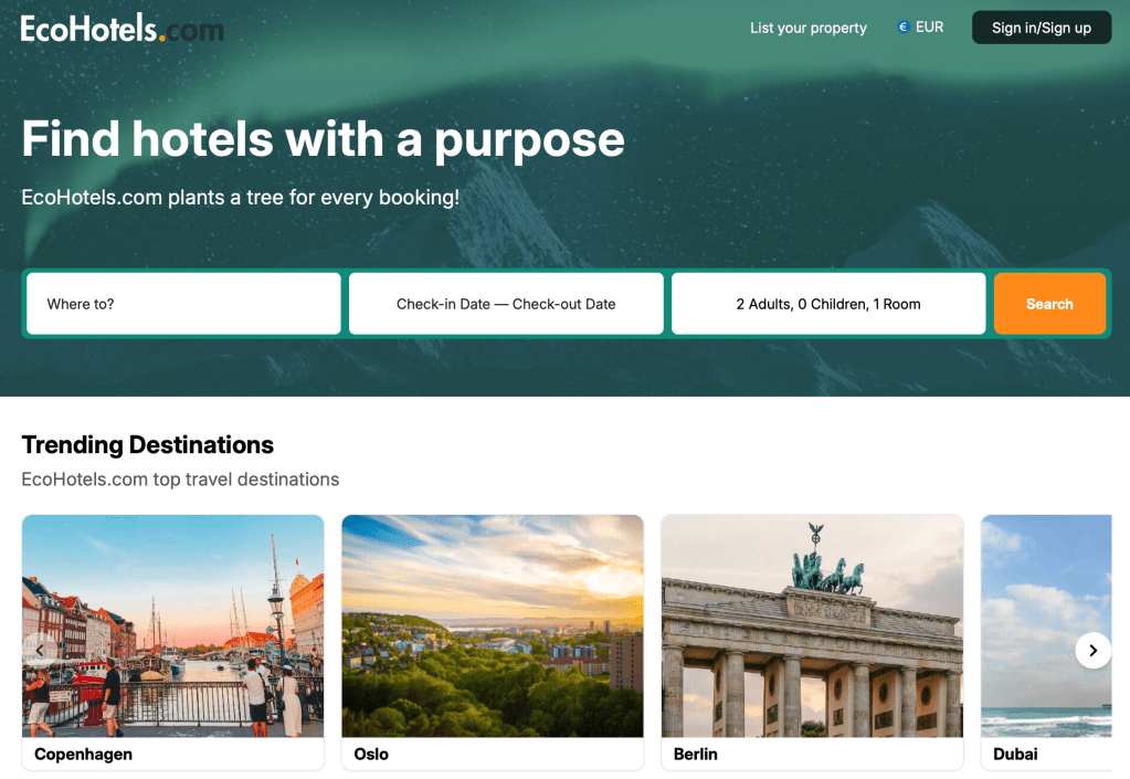 Founded in Copenhagen in April 2020, EcoHotels.com emerged as an alternative booking site focusing on true sustainability, fair principles, and low commissions. Unlike mainstream booking platforms that merely add green filters as an afterthought, EcoHotels.com was built from the ground up with sustainability at its core.