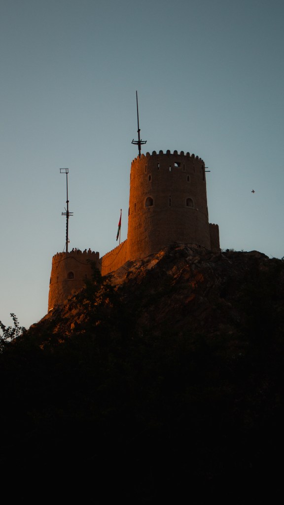 For my final day in Oman, I begin the journey back to Muscat. Taking the tiniest tracks between the mountains navigating from one oasis to another and taking an important detour to visit Nakhal Fort. Perched atop a rocky outcrop, this magnificent structure stands as one of Oman’s most picturesque forts. Unlike the rounded tower of Nizwa, Nakhal’s irregular shape follows the contours of the hill it occupies, creating an organic blend of architecture and landscape.