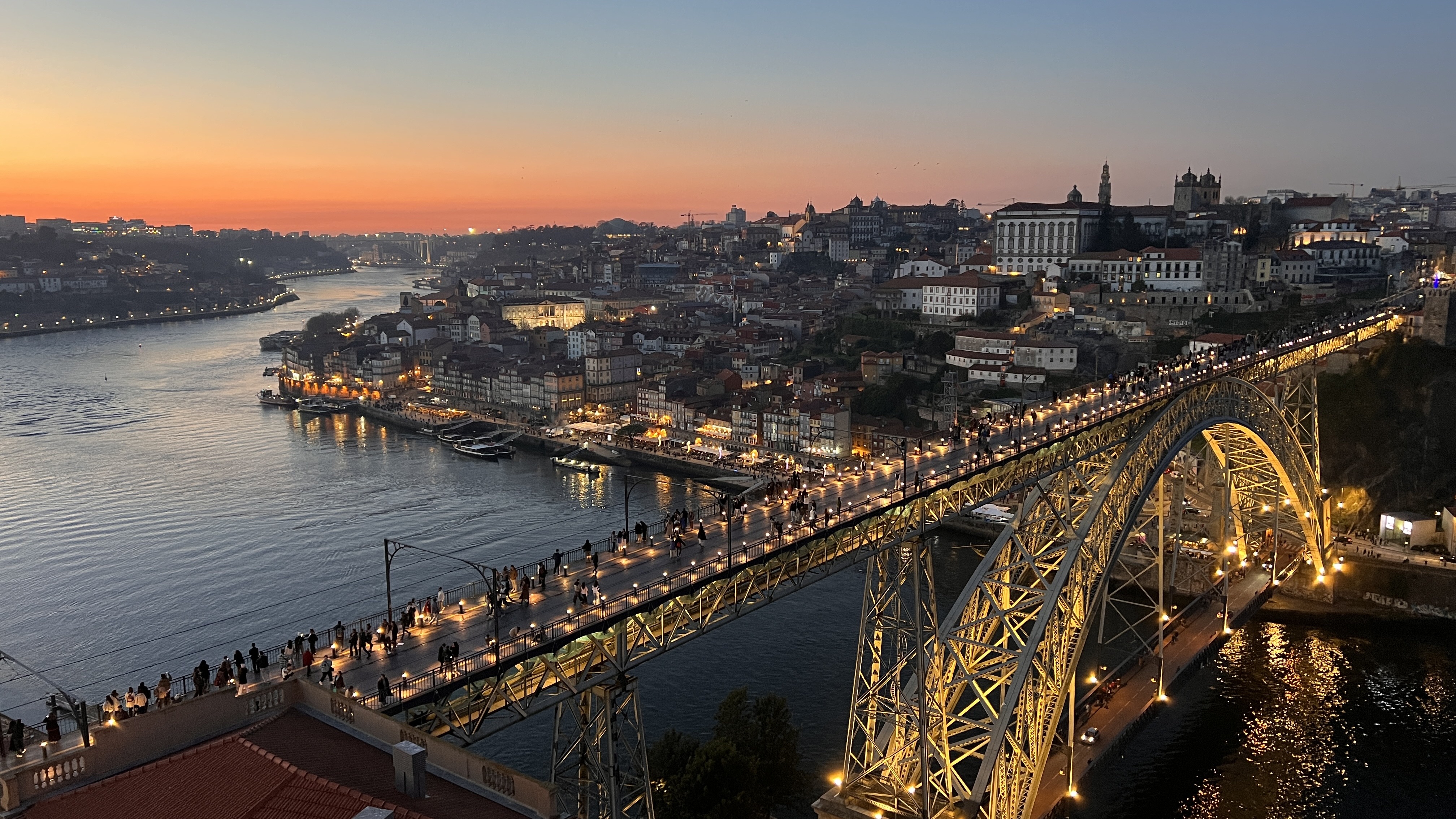 As you walk across the upper deck, you’re treated to a panoramic view of Porto’s colorful riverside buildings, the iconic Ribeira District. The stunning sunset views from the bridge are a must-see.